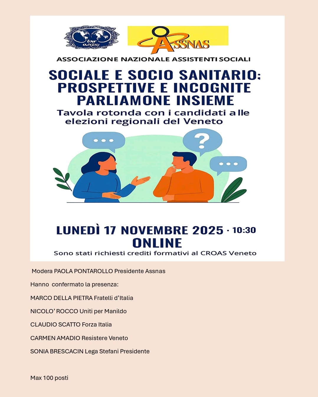 Evento 17.11.25 – Video Tavola rotonda con i candidati Regione da assnas | Nov 19, 2025 | Notizie Tavola rotonda con i candidati alle elezioni regionali del Veneto TAVOLA ROTONDA CON I CANDIDATI REGIONE VENETO Guarda il Video qui