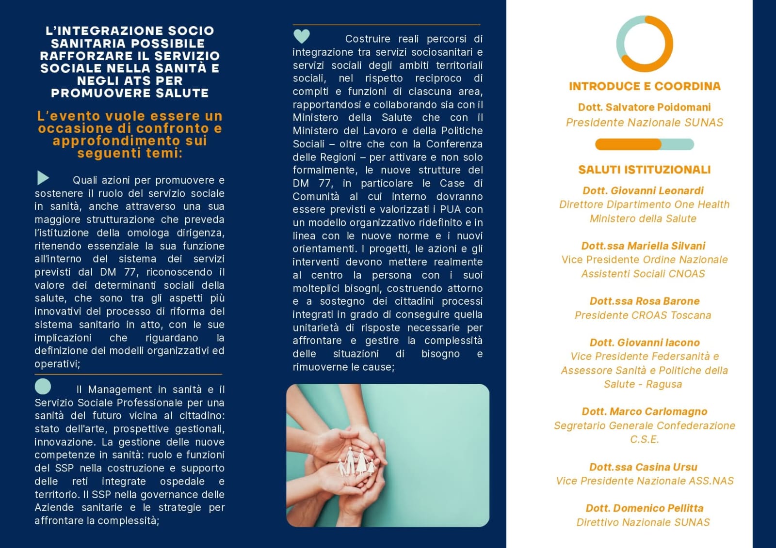 L’evento è stato introdotto e coordinato dal Dott. Salvatore Poidomani, Presidente Nazionale SUNAS, e ha visto la partecipazione di autorevoli rappresentanti istituzionali, tra cui: